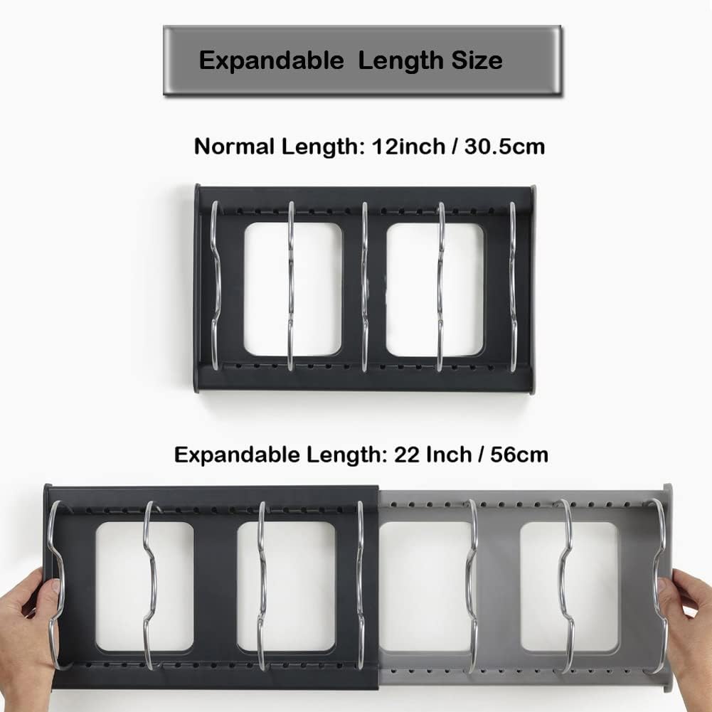 - 【Expandable Pan & Pot Organizer Rack】- This Expandable Storage Kitchen Rack from our Y.Z Union Store has 7 tiers, allowing you to hold 7 or more different size pots, pans & lids. Its base length can be extended from 12 inches (30.5cm) to 22 inches (56cm), which helps maximize your storage space with easy access, keeping your cabinet and countertop tidy and well-organized. It is flexible and convenient to use and meets any storage requirements.
